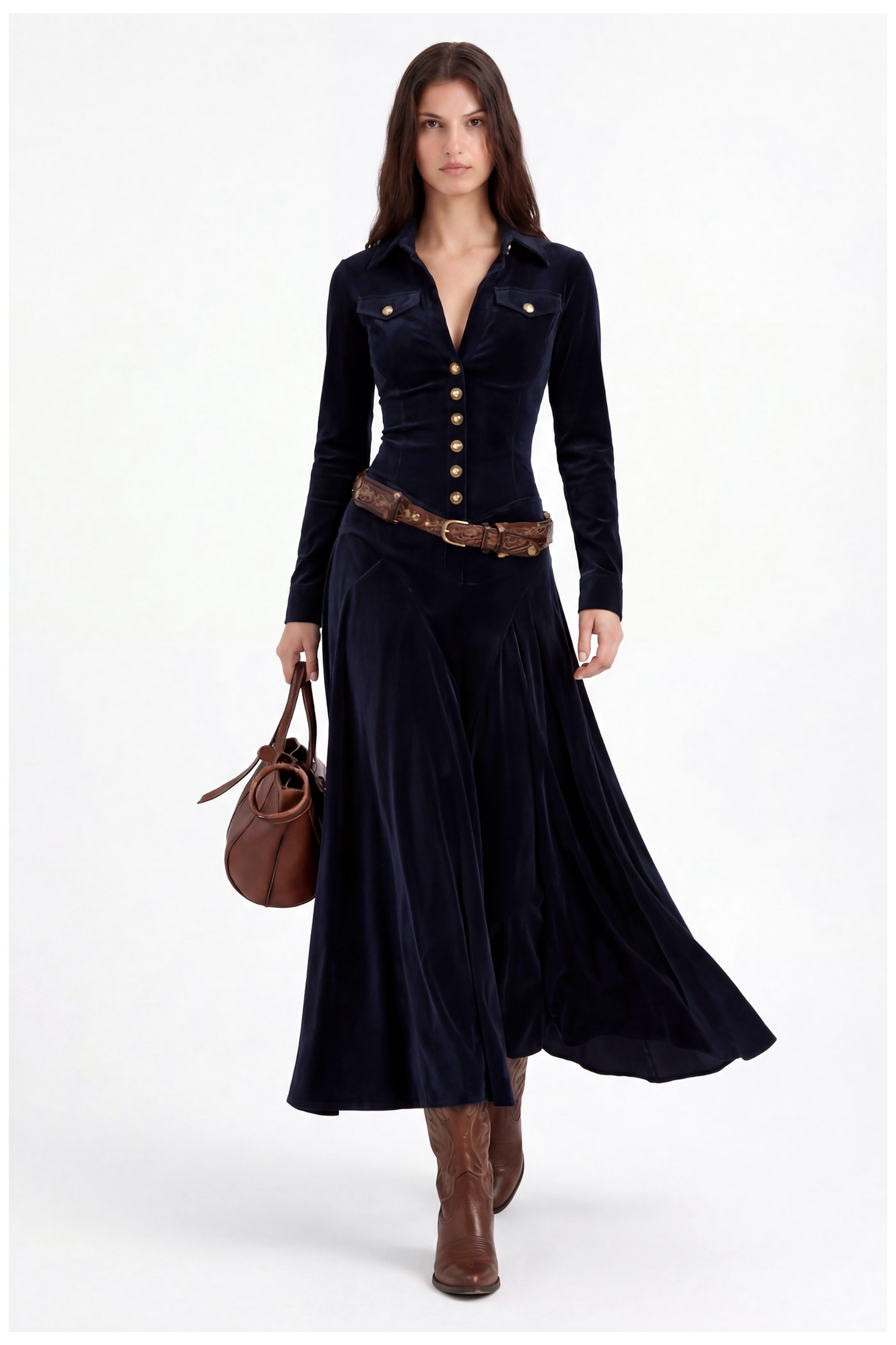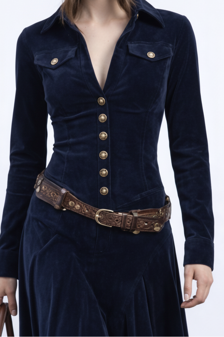 Diana | Vestido largo de ante con botones
